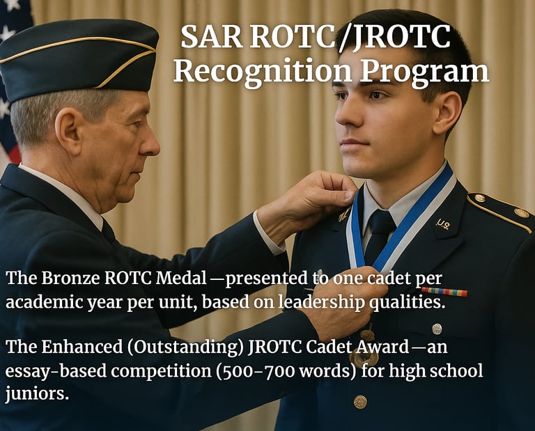 Cadets in ROTC or JROTC may be honored with SAR recognition at the chapter, state, or national levels: